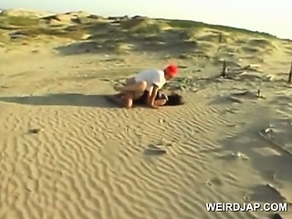 Asian teen doll in school uniform cunt drilled at the beach