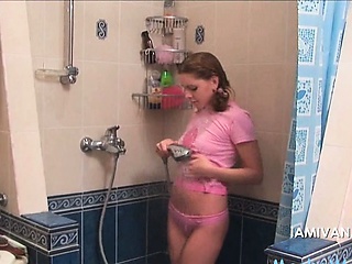 Teen beauty teasing her little snatch in the shower