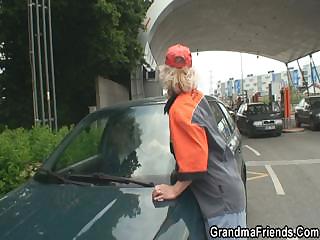 Two dudes screw old bitch