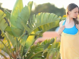 Pretty slender blonde teen strip off then masturbate outdoor