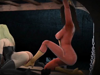3D superhero babe gets whipped and has her pussy rubbed