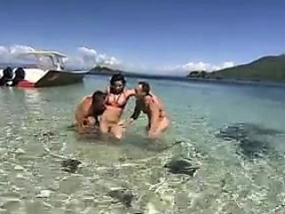 Slut In A Threesome At The Beach