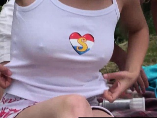 Blonde teen girls pleasing pussies on picnic