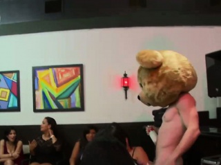 Clothed slut swallows cum at cfnm party