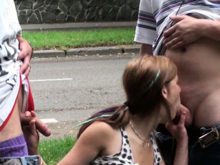 PUBLIC street gangbang with a teen girl Part 3