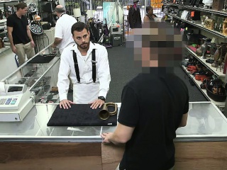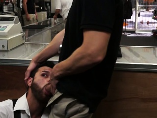 Straight desperate guy sucking cock in public store