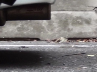 Asian pisses behind car