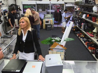 Sexy blonde milf pawns her pussy and pounded at the pawnshop