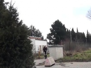 Teen brunette dares to take a piss in snow