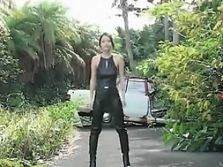 Asian Babe Wearing Leather Outdoors