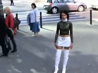 Chick Outside In A Hot Latex Outfit