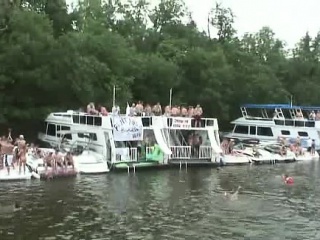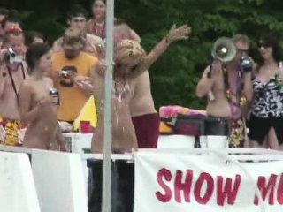 many Teens dancing nude at public party