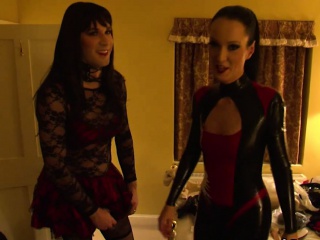 Kinky wife in PVC with crossdressing husband