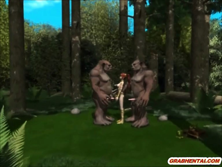 Redhead 3d anime cutie gangbanged by monsters in the forest