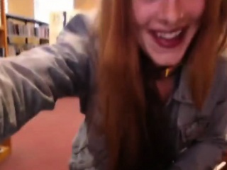 Naughty girl nude in library
