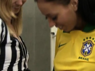 Lesbian friends in dressing room Brazilian player romping th