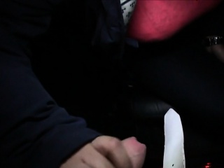 Busty blonde bangs taxi driver outdoor