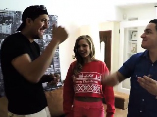 Naughty teen besties enjoyed foursome sex on the couch
