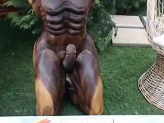Skinny brunette is outside fucking a statue and bat on her