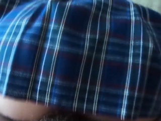 Redhead in school uniform fucks