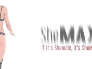 Lovely ladyboy poses in blue satin lingerie and strokes cock