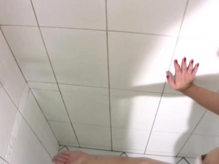 Chubby teen shemale is stroking decent sized dick in shower