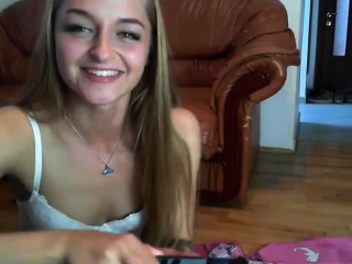 Dazzling blonde camgirl in stockings makes herself cum with