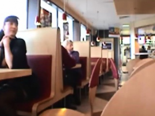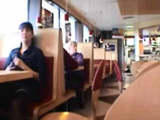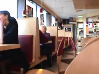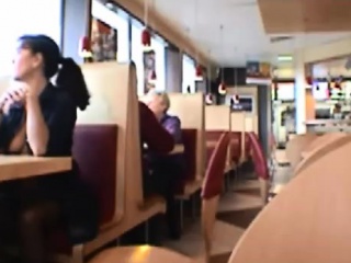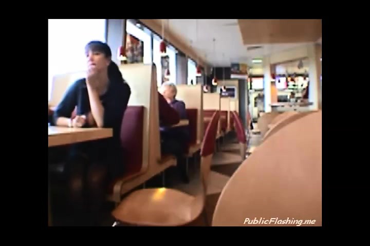 Dark haired chick flash tits in public restaurant
