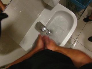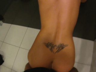 Delightful redhead works her juicy peach on a hard cock in the toilet