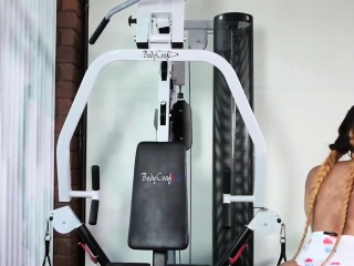 Ebony tgirl strokes her cock after workout