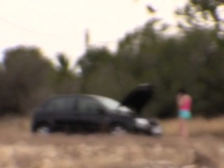 Fake cop bangs brunette near public road