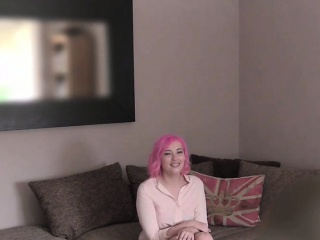 Pink haired babe fingered in casting