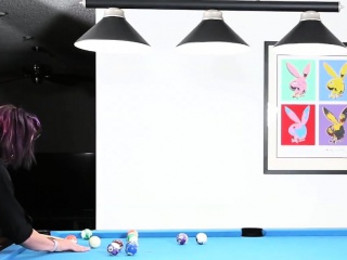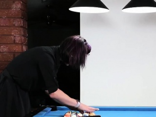 Tattooed pierced tgirl wanks on pooltable