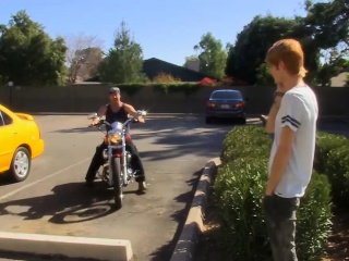 Cute twink Preston Andrews gets banged by a sexy biker
