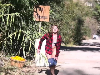 Hitchiker Hayden Hennessy gets her pussy fucked in the woods