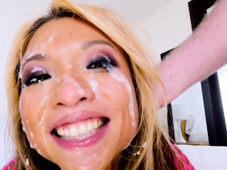 Asian slut gets wam cum
