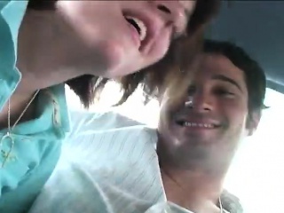 Cute hitchhiker sets her big boobs free and works her mouth on a dick