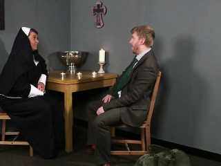 Plump brit nun cocksucking until face spunked