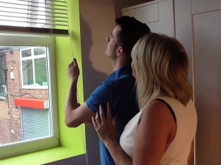 Busty mom pleasures a guy for fixing her shutters