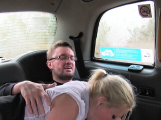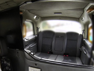 Busty female cab driver gags clients big dick