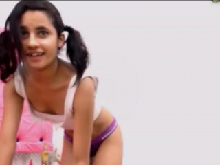 Pretty brunette teen dancing on webcam