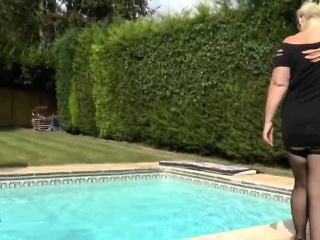 Chubby blonde cougar gets banged by pool boy