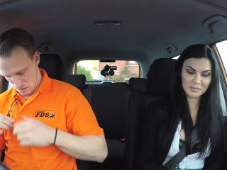 Dude bangs busty examiner in car