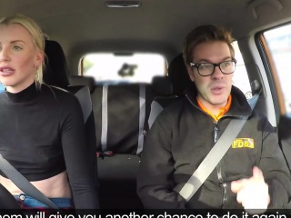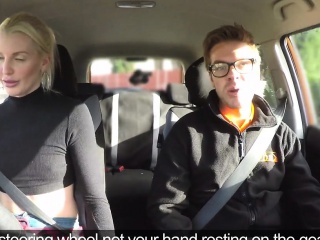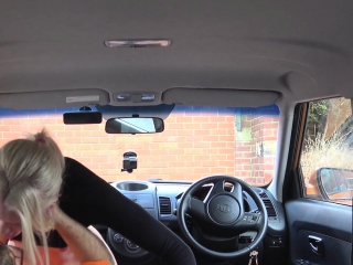 Nasty blonde fucks instructor in his car