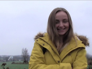Busty amateur bangs for money in public