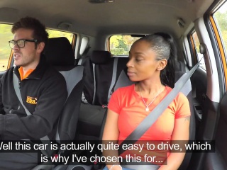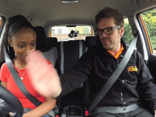 Fake Driving School ebony learner with big tits