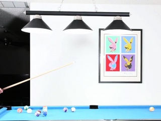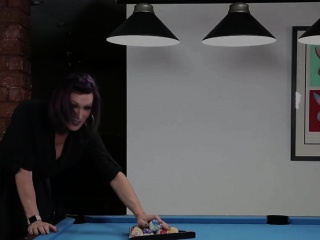 Busty trans trap tugs hard cock on pool table