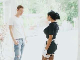 Huge boobs tattooed maid gets pussy banged by big cock