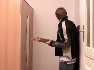 She cuckolds husband riding pizza boy's cock