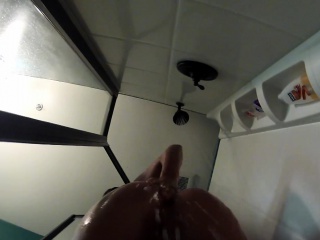 Kirsten showers with an underwater camera
